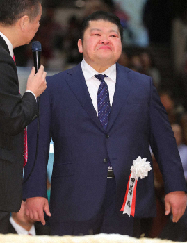 押尾川親方は断髪式が始まってすぐに目を潤ませ、まげに別れを告げると再び涙がこぼれた。土俵から去る際には「相撲に感謝」と書かれた紙を掲げ、四方に深々とお辞儀。「相撲をやっていなければ、あそこからの景色が見られない。相撲をやっていなければ今日来た人たちに出会えなかった」とその意図を説明した。