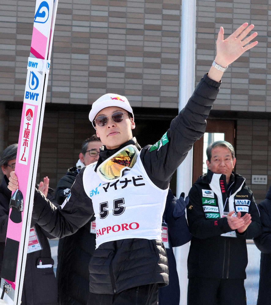自国開催のW杯初優勝はならなかった。小林陵は1回目4位から1つ順位を上げて表彰台に上がったが、昨季も最高は3位で「なかなか勝たせてくれないですね。大倉山は」と悔しさをにじませた。この日36位の土屋ホームの葛西紀明兼任監督が持つ日本男子最多17勝に王手をかけていたが次戦以降に持ち越され、「まだ待て!ってことじゃないですか」と苦笑い。今後はW杯個人総合2連覇を目指して渡欧し、「(4位で)総合トップは厳しいかもしれないが、大倉山のうっ憤を晴らしたい」と前を向いた。