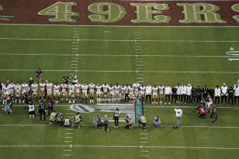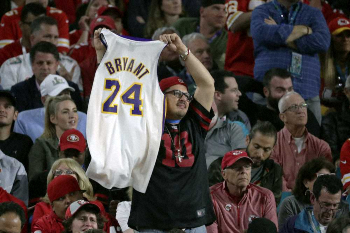 大型の電光掲示板にはこの事故で死亡したブライアント氏や次女ジアナさんの写真などが映し出され、チーフスと49ersの両軍選手はブライアント氏の現役後半の背番号にちなんで自陣「24ヤード」地点に整列。試合前にはチーフスのQBパトリック・マホームズ(24)は試合前に膝をついて祈りを捧げ、多くの選手が自分のシューズにブライアント氏を追悼するメッセージなどを書き込んでいた。