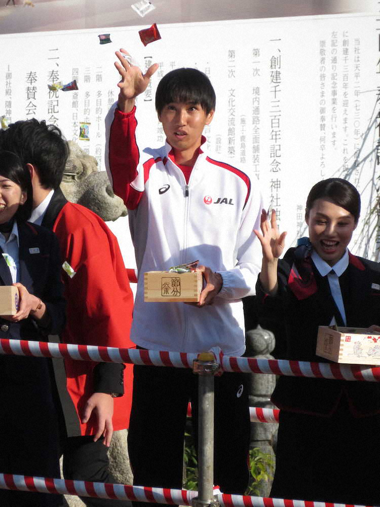 陸上の男子走り高跳び日本記録保持者の戸辺直人(27=JAL)が3日、東京・神田明神で行われた「節分祭豆まき式」に参加。JAL社員らとともに威勢のいい掛け声で参拝客に豆をまき「楽しかった。良い気分転換になりました」と東京五輪に向けて気持ちを新たにしていた。