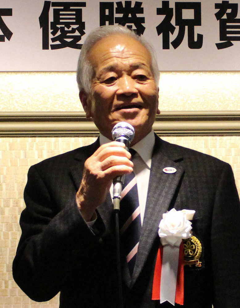 手嶋啓会長 国体優勝に「25年の節目…喜ばしい」福岡県ゴルフ協会祝賀会