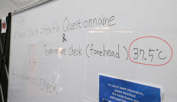中国の湖北省、武漢で見つかった新型コロナウイルスによる肺炎が世界へ広がりを見せていることもあり、IDカードを受け取る前に「最近の湖北省への渡航歴」などのチェックシートを記入した後に、体温を測定した。37度5分を超えると入場は不可となる。観客にもチェックシートの記入、体温測定が行われた。