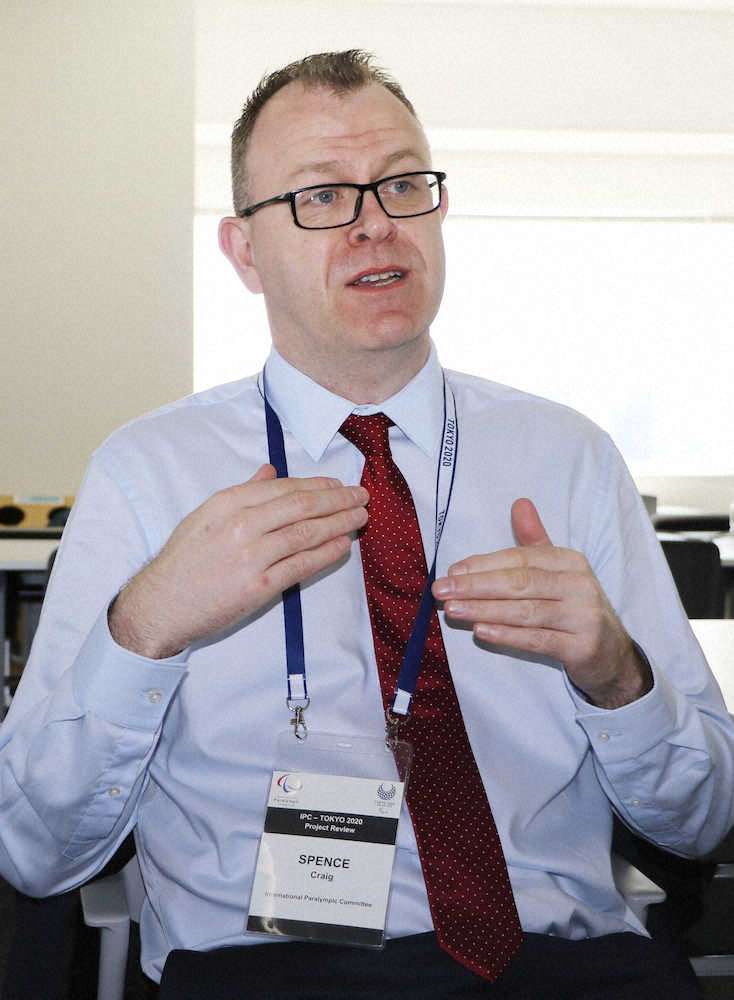 インタビューに答える国際パラリンピック委員会のクレイグ・スペンス広報部長