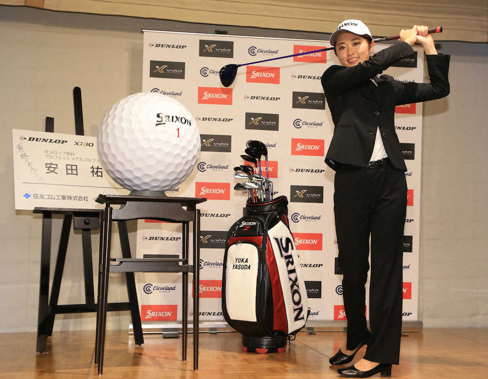 女子ゴルフの注目ルーキー安田祐香(19)が住友ゴム工業と用品使用契約を結び、5日に都内で発表会見を行った。契約内容については非公開で、「小学3年からお世話になっている。結果で恩返ししたいです」と前半戦での初優勝を目標に掲げた。