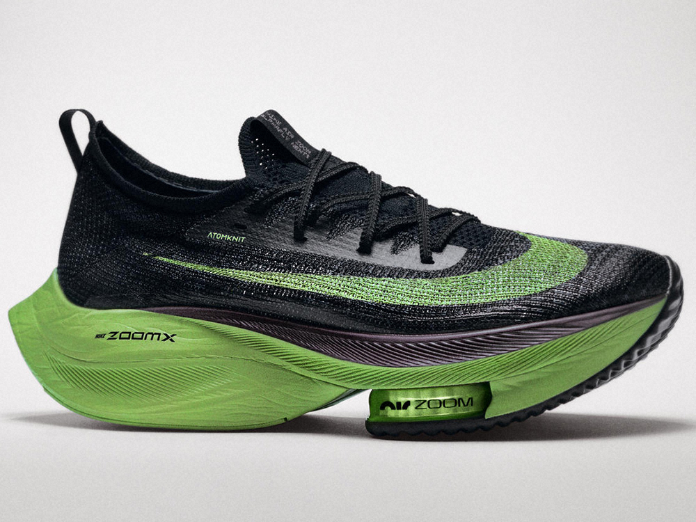 ナイキによると、次世代シューズの商品名は「エアズームアルファフライネクスト%」(アルファフライ)。特徴はシューズ前方に2つ搭載された「エアバッグ」で地面を蹴ったときの反発力が増す構造になっている。また、厚底部分は従来品よりもクッション性が向上しているという。
