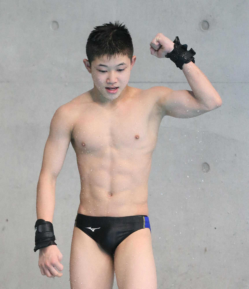東京五輪出場が懸かる飛び込みW杯東京大会(4月21~26日、東京アクアティクスセンター)の出場権を懸けて行われ、男子高飛び込み決勝で、玉井陸斗(13=JSS宝塚)は458・05点で1位となり、W杯出場権を獲得した。W杯で18位以内に入れば、五輪出場が確実となる。2本目の207C(後ろ宙返り3回半抱え型)で入水に失敗。苦手としている後ろ入水のミスで出遅れたが、重圧のかかる3本目以降を安定した演技でまとめた。13歳10カ月で迎える東京五輪に出場すれば、32年ロサンゼルス五輪の競泳北村久寿雄(14歳10カ月)を抜く日本男子最年少記録となる。