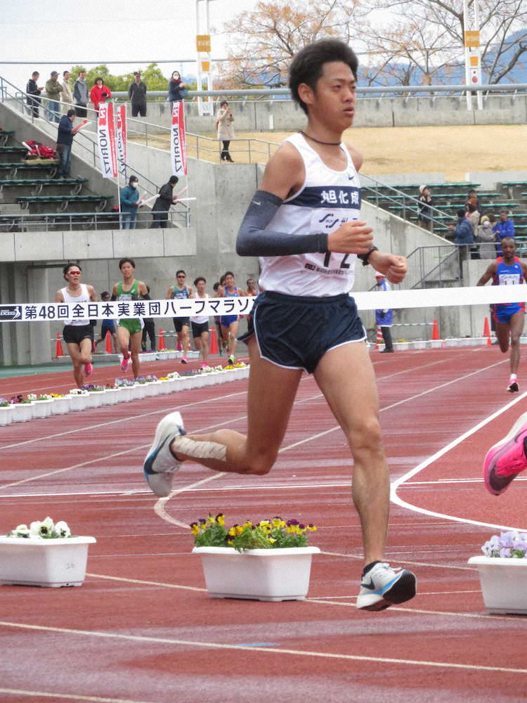 全日本実業団ハーフマラソンは9日、山口市の維新みらいふスタジアム発着で行われ、来月1日の東京マラソンで東京五輪代表最後の1枠を狙う村山謙太(26=旭化成)は1時間1分26秒で19位だった。