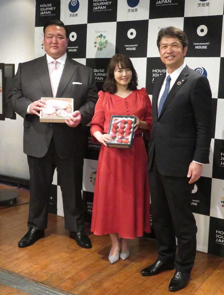 大相撲の荒磯親方(33=元横綱・稀勢の里)が14日、東京都千代田区の新丸の内ビルディングで行われた茨城県産の食材と地酒を使ったメニューフェア「HOUSE JOURNEY JAPAN 茨城~常陸の国は、ラグジュアリー。~」のオープニングイベントに参加し、大井川和彦・茨城県知事(55)、タレントの磯山さやか(36)とともにトークショーを行った。