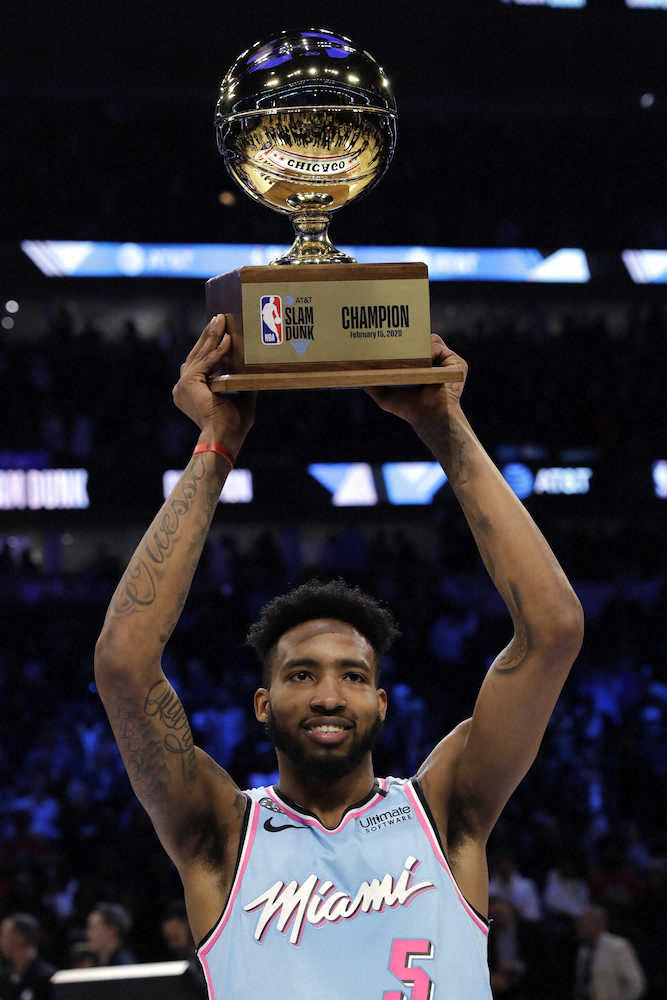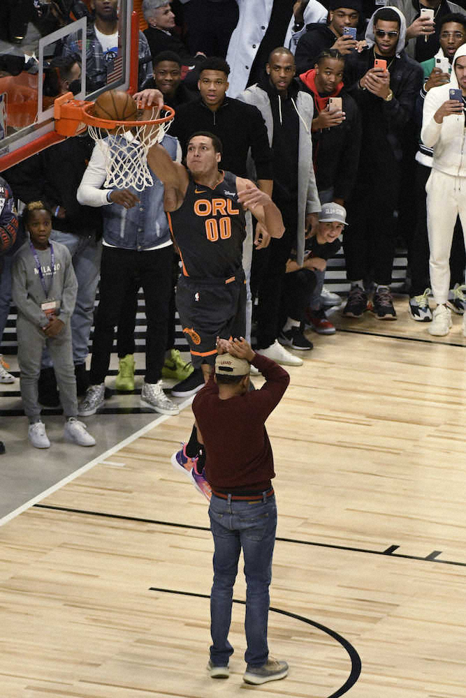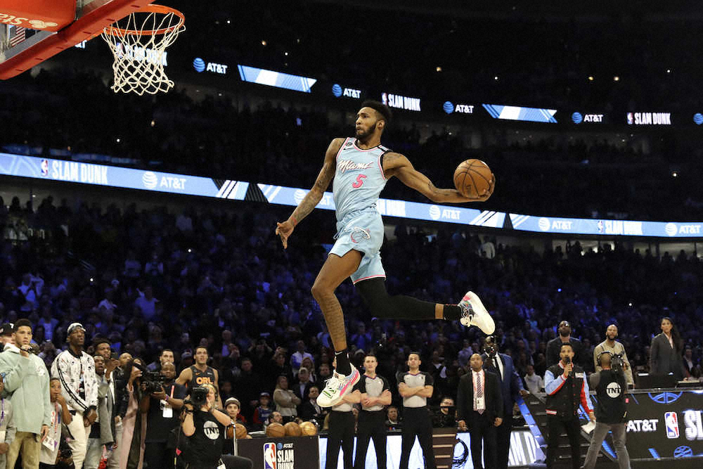 男性を飛び越えてレッグスルーからダンクを決めたヒートのジョーンズJR(AP) Photo by AP スラムダンク王はヒートのジョーンズJR 敗れたゴードンは驚異の新技を披露 ギャラリーで見る この記事のフォト 2020年02月16日の画像一覧 もっと見る 2020年02月16日の画像をもっと見る
