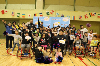 子供らは「車いすバスケットボール」「かけっこ教室」「ゆるスポーツ」「チアダンス教室」のうちの1つを体験、白石は「かけっこ教室」の講師として、速く走れるコツを伝授した。