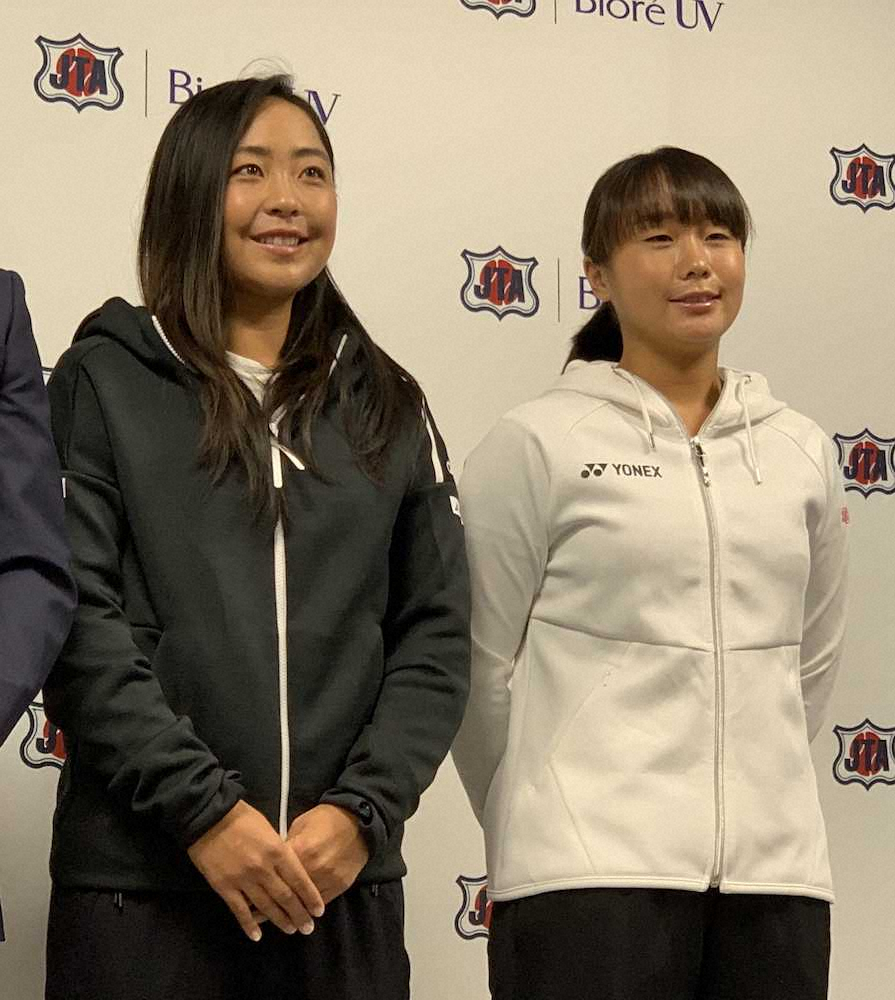 都内で行われた会見には、リオ五輪日本代表の穂積絵莉(26=日本住宅ローン)、内藤祐希(19=亀田製菓)の2選手が出席。18年全仏オープン女子ダブルス準優勝の穂積は「とても心強い。ビオレUVと一緒に心身ともに健康で世界にチャレンジしたい」とPRした。