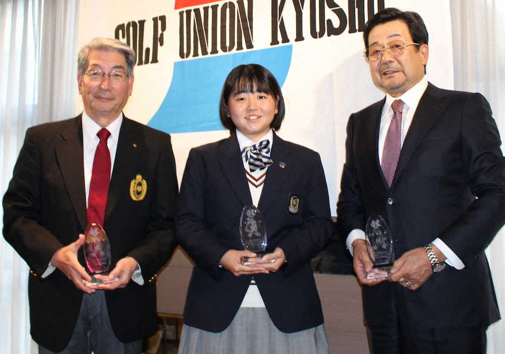 九州ゴルフ連盟は2月20日、福岡市内で通常総会を開き、2019年日本ジュニアチャンピオンの外園華蓮(宮崎・日章学園中3年)はじめ、同年度の日本選手権で優勝した3選手を表彰した。