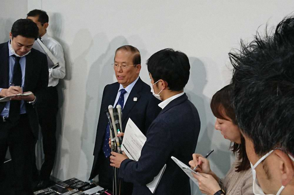 取材に応じる組織委の武藤事務総長