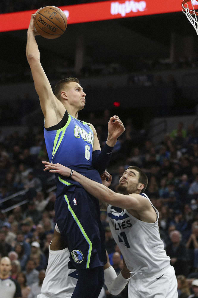 NBAは1日に各地で7試合を行い、西地区全体7位のマーベリクスは敵地ミネアポリスでティンバーウルブスを111―91(前半63―44)で下して37勝24敗。昨季の新人王で今季のは球宴に先発したルカ・ドンチッチ(21)が左手親指を痛めて欠場したが、ラトビア出身の221センチ、クリスタプス・ポルジンギス(24)が25本中13本のフィールドゴール(うち3点シュートは14本中6本)を成功させ、今季自己最多に並ぶ38得点と13リバウンド、5ブロックショットをマークして勝利に貢献した。