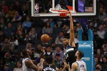 東地区全体首位のバックスは敵地シャーロットでホーネッツを93―85(前半45―43)で退けて52勝8敗。100点以上の連続記録は83試合でストップしたが、ヤニス・アデトクンボ(25)が41得点と20リバウンドを稼いで6連勝を飾った。