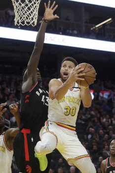 ウォリアーズは14勝49敗。ラプターズはカリーとマッチアップしたノーマン・パウエル(26)が自己最多の37得点をマークして3連敗のあと白星を2つ並べ、今季の成績を44勝18敗として7季連続のプレーオフ進出を決めた。