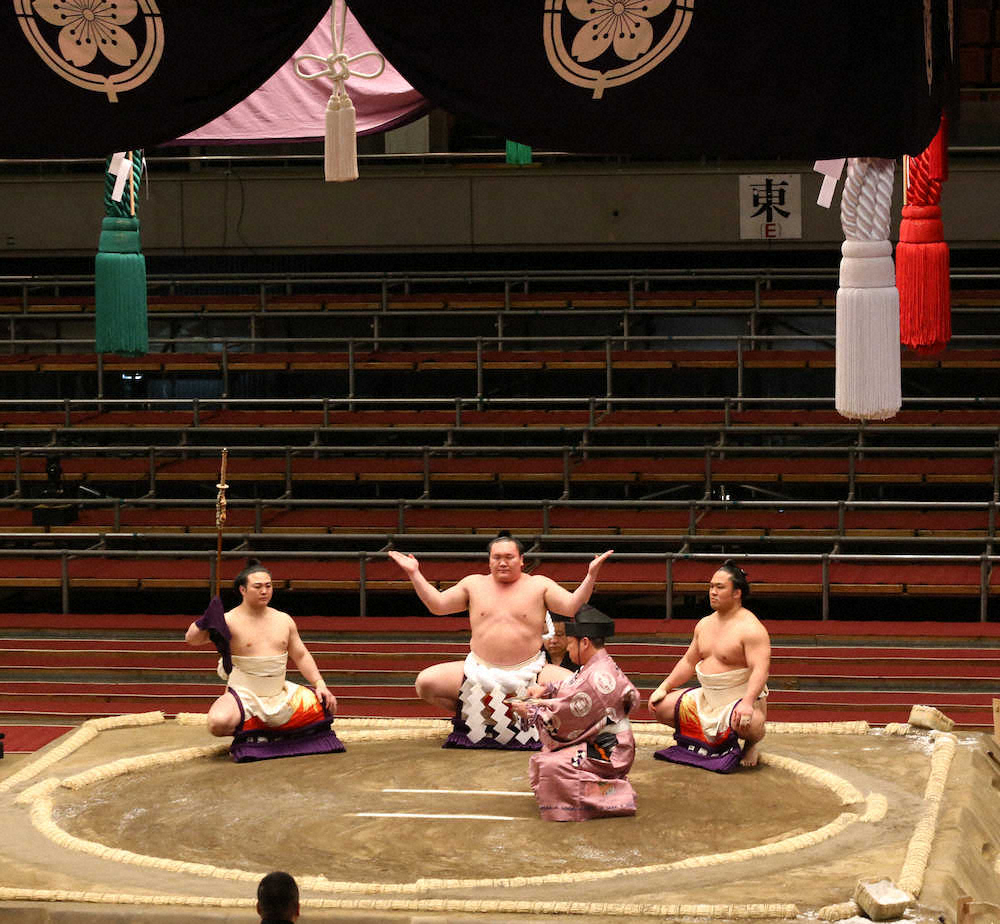 大相撲春場所は8日、エディオンアリーナ大阪で初日を迎えた。新型コロナウイルス感染拡大の影響で、史上初めて無観客で開催された異例の場所。普段は大歓声が飛び交う会場もこの日は静寂に包まれ、体がぶつかる衝撃音やまわしを叩く音が響いた。