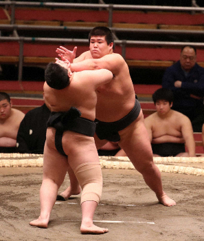 今春、中大を卒業し、弟2人を追い掛けるように入門。場所前に師匠の大嶽親方(元十両・大竜)からしこ名を付けてもらった。「祖父の鵬の字をもらって気が引き締まります。名前に恥じないようにしたい。目標は2、3年で十両に上がること」と決意を口にした。