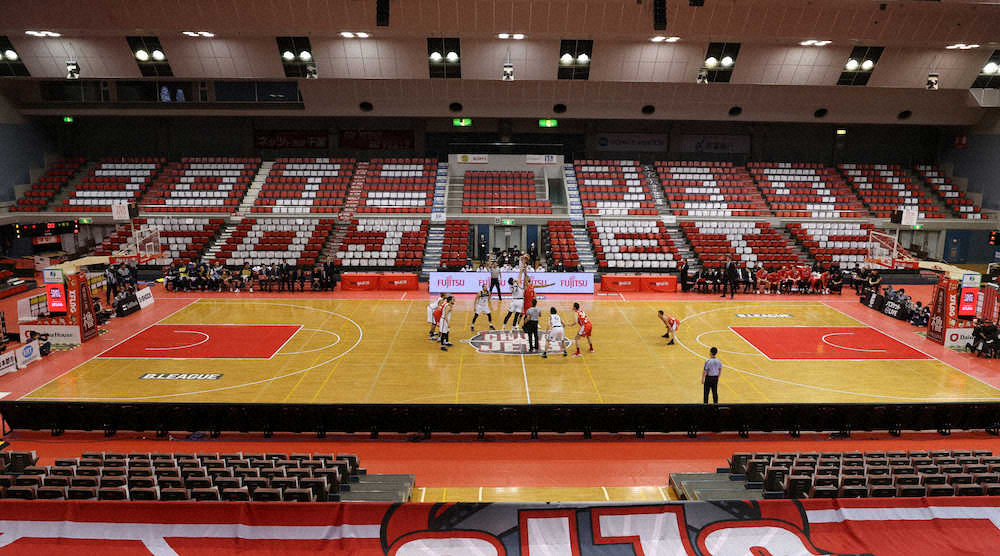 船橋アリーナでは東地区1位の宇都宮と同3位の千葉が対戦。人気チーム同士の対戦で普段なら満員となる会場だが、歓声が消えた。前日(13日)には運営スタッフが数時間かけ、観客席に千葉の応援ボードを貼り付け「コロナニショウリ!GOJETS」という文字が見えた。無観客での実施は4月1日までで、以降の試合については再度、検討する。