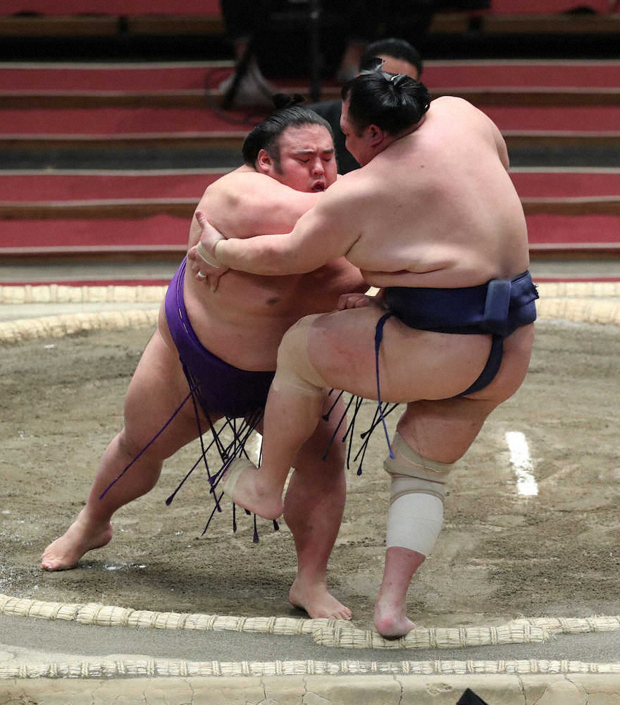 「向こうも気持ちで相撲を取るタイプ。ちょっとしたことで白黒変わる」。いつも激戦になる対北勝富士。立ち合いで押し込んだが、引いて逆襲を食らい追い詰められると土俵際で左の突き落とし。体勢が崩れた相手を追いかけて土俵下まで押し出したが、直後に左膝を痛めたのか左のかかとがつけない状態だった。場所前から左膝に違和感があったようで、形勢逆転の突き落としが患部を悪化させた可能性もある。