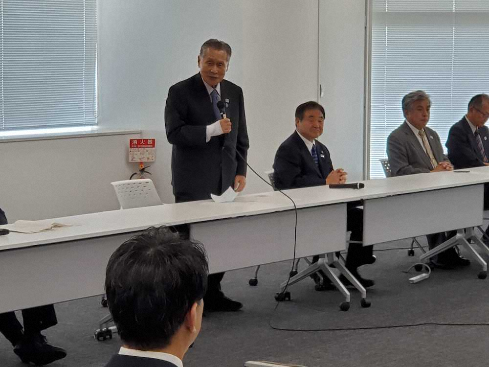 東京2020五輪・パラリンピック組織委員会は26日、21年へ延期となった五輪の新たな計画を策定する「新たな出発 東京2020大会実施本部」を立ち上げ、都内で第1回会議を開いた。森喜朗会長、武藤敏郎事務総長ら組織委の幹部31人が出席。冒頭であいさつした森会長は「ラグビーで言えば展開戦。FW戦ではない。むしろどんどん展開して、新たに積み上げていくということになろうかと思います」と、短期間でスピーディーな決断と実行が求められる作業について説明した。