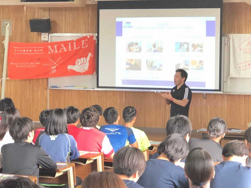 今回の合宿は、理念に賛同したMAILE 株式会社(まいれ整骨院グループ)、学校法人呉竹学園東京医療専門学校の協力のもと開催。「The Stadium」の山田晃広代表取締役社長は「宮古島では医療に携わりたい方が多いと感じていますが、どうやって学校を選んでいいのか、医療の資格で、どれを選ぶとどうなるかがわかりにくいので、その辺りを学校の先生と共に導いていく必要性を感じました。今後は他の県や地域でもこのような活動を行なっていきたいと考えています」と語った。