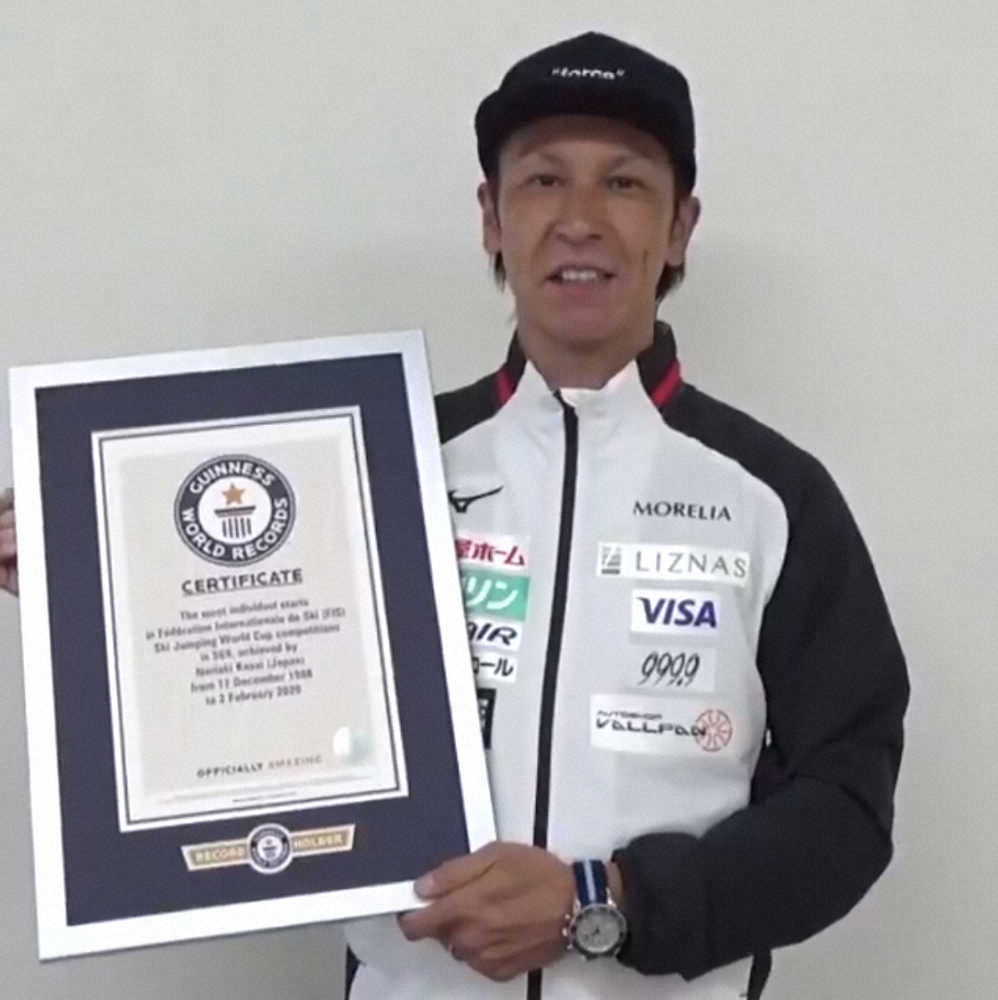 ノルディックスキーのジャンプ男子で47歳の葛西紀明(土屋ホーム)がW杯個人最多出場試合数を569に更新したとして、ギネス世界記録認定証を受け取った。6日、ギネスワールドレコーズジャパンの公式ツイッターで「またこの記録を更新できるよう、これからも頑張っていきたい」と笑顔で語った。