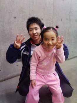 ☆6歳 07年1月に全日本卓球選手権で3冠(シングルス、ダブルス、ジュニア)を達成した同郷で同じ「豊田町卓球スポーツ少年団」出身の水谷を祝福。