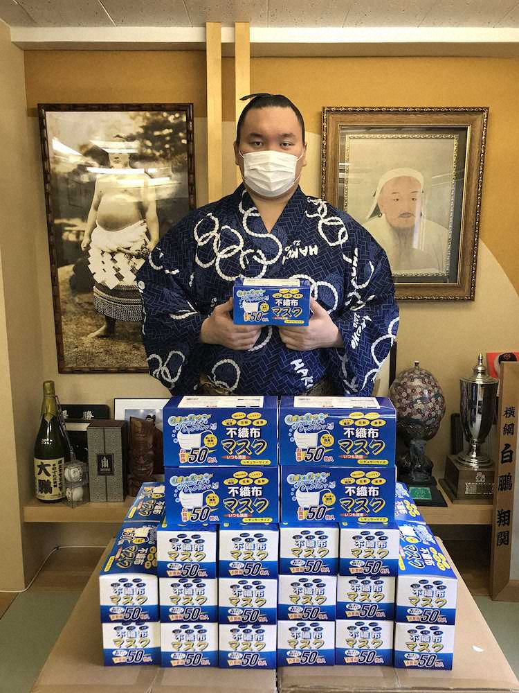 日本相撲協会は11日、春場所で44回目の優勝を飾った横綱・白鵬(35=宮城野部屋)が日本とモンゴルの医療従事者などへマスク2万5000枚を寄贈することを発表した。新型コロナウイルスの影響により、無観客開催となった春場所で獲得した懸賞金138本(414万円)の中から購入したという。白鵬は相撲協会を通じてコメントを発表。応援してもらったファンに感謝し「頂いた懸賞金を使って世の中のために何かできないか」と行動に移した。