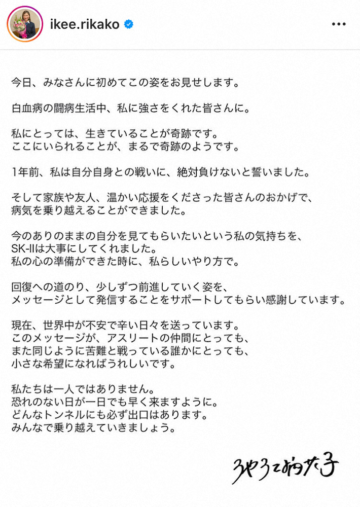ウィッグを取った姿を初めて公開した池江璃花子 Photo by 提供写真 池江璃花子「ありのままの自分を」 ウィッグ取った姿初公開「多くの方の… ギャラリーで見る この記事のフォト 2020年05月18日の画像一覧 もっと見る 2020年05月18日の画像をもっと見る