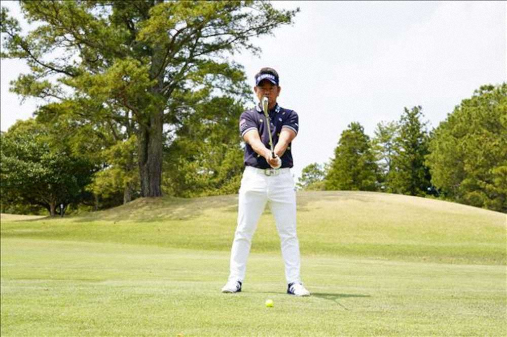 藤田 先ほど説明した両肩と両腕でできる三角形を崩さずにスイングすることです。最初はハーフスイングで行い、徐々にスイングを大きくしていくといいでしょう。下からすくい打つとフィニッシュでお腹が前に出て反り返ったような形になりますが、ダウンブローで打てれば、左足に体重がしっかり乗り、右肩が前に出た形になります。(取材協力=千葉・きみさらずゴルフリンクス、静岡・葛城ゴルフ倶楽部)