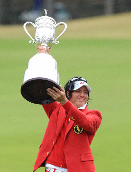 18番パー5は、当時ツアー2勝の松村が先にピン左12メートルに2オンした。石川の第2打は残り228ヤード。グリーン手前の池を避けて刻む選択肢もあったが、15歳でツアー初優勝をしたミラクル男に安全策の考えはなかった。5Wの一打はかろうじて池を越え、ピン手前6メートルに2オンした。大歓声がグリーンを包んだ。互いに2パットのバーディー。1打差逃げ切った。2年ぶりの優勝を涙で飾った。