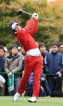 最終日はドラマチックだった。12番から雨。コースを彩る紅葉と雪化粧をした富士山とのコントラストがかすんでくると、単独首位で出た石川が失速した。雨の優勝経験がなく「またダメか」と弱気になり、16、17番で連続ボギー。最大4打あった同組の松村道央との差が「1」に縮まった。