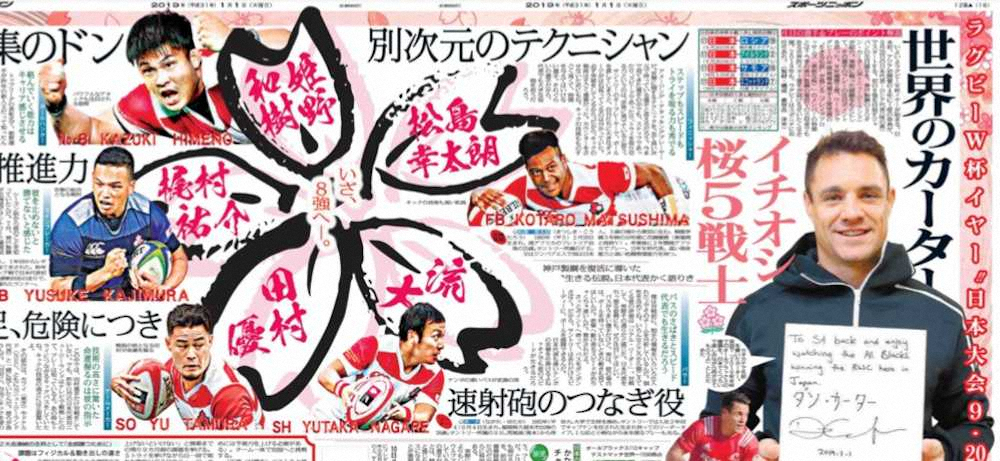 2019年元日の大阪版で、カーターは日本代表候補を語るとともに、初の日本語にも挑戦した