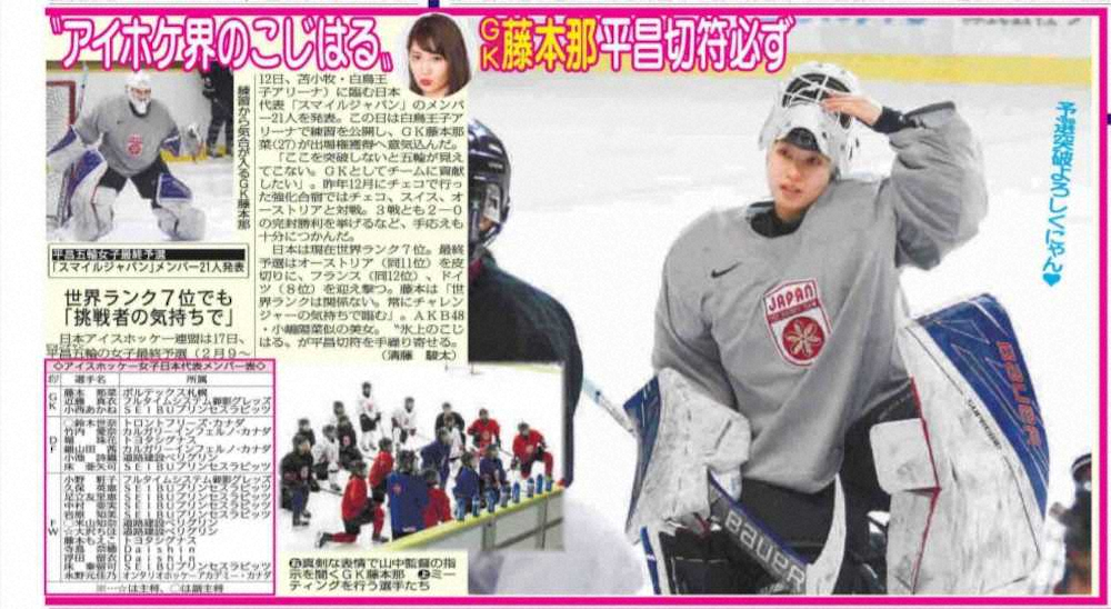 “柱”となる選手が必要だった。元なでしこジャパン主将の澤穂希のように、どの競技にもメディアをけん引する選手がいる。「メディアの露出を増やしたい」という日本アイスホッケー連盟の広報からの相談も受け、ソチ五輪から日本の守護神として活躍していたGK藤本那菜(31)の「愛称」を考えた。
