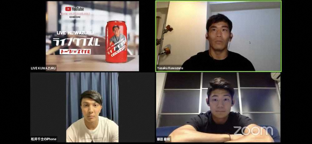 16年リオデジャネイロ五輪7人制ラグビー男子日本代表主将で、今月13日に1年延期となった東京五輪代表候補からの離脱が発表された“ミスターセブンズ”こと桑水流裕策(34=コカ・コーラ)が20日、自身初となるYouTubeライブ「ライブクワズル トークアンドスマイル」で離脱の理由などを明かした。トークショーには東京五輪代表候補の松井千士(25=サントリー)、藤田慶和(26=パナソニック)がゲスト参加した。