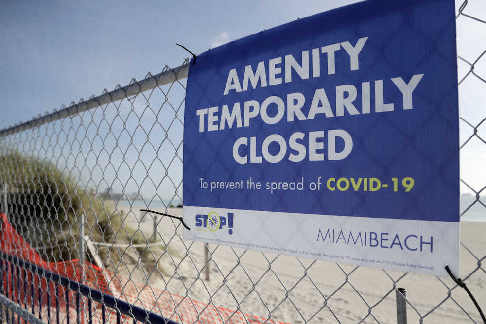 閉鎖されたマイアミのビーチ(AP)
