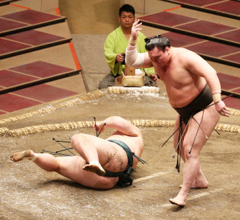 これがお手本だ。立ち合いすぐに左上手をつかんだ白鵬は息つく暇も与えず振り回し、いとも簡単に1メートル85、175キロの豊山を横向きに転がした。わずか2秒4。全く息を乱さず、満足げな表情で場内の拍手を受けた。