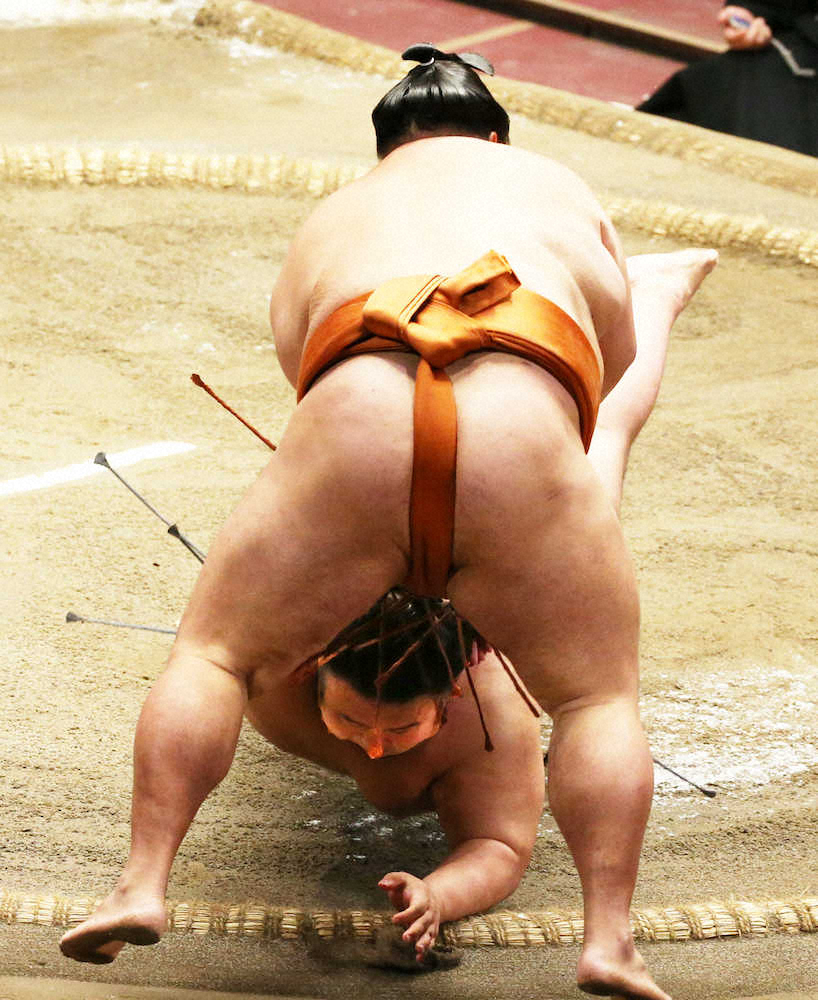 立ち合いで頭から当たり、引いた相手に乗じて押し出した。ライバルを退けて勝ち越しを決め、「あまり考えずにいきました。負け越したら力がないということ」と振り返った。初のカド番だった昨年の名古屋は膝のケガで休場して転落。それだけに、「去年の方が悔しい思いをした。やるしかないという気持ちだった」と最初の目標クリアに胸をなで下ろした。