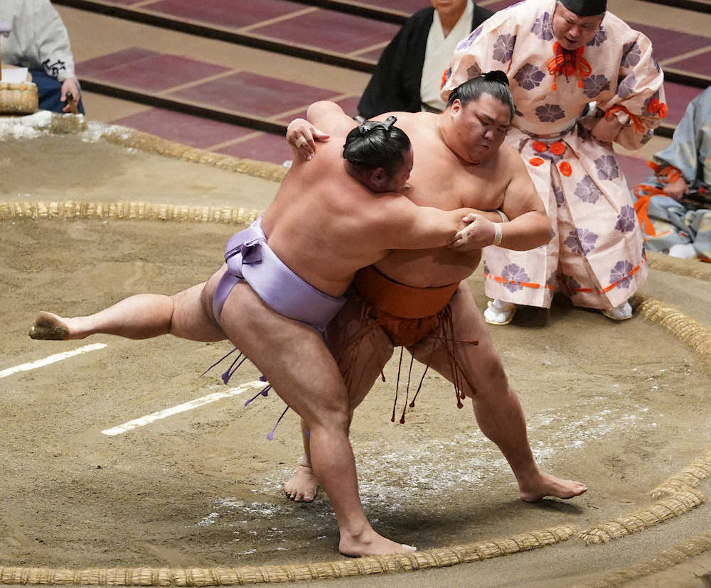 最終盤でにわかに大混戦の気配が漂ってきた。関脇・御嶽海は平幕・琴恵光をすくい投げで下し、3敗をキープ。優勝争いトップの平幕・照ノ富士が2敗に、新大関・朝乃山が3敗にそれぞれ後退した。2日の千秋楽は御嶽海が照ノ富士を下せば、結びの3敗対決の勝者を含めた3人で優勝決定の巴戦にもつれ込む。