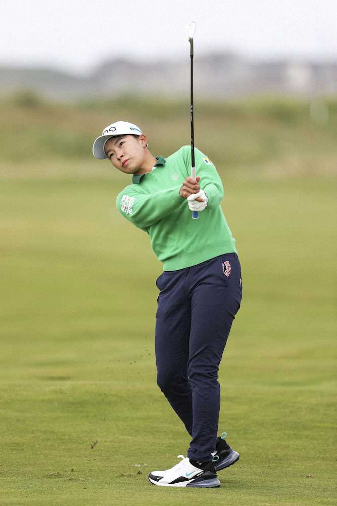 奈紗 光明18番バーディー締め!全英女子OP初日は強風に耐えて3オーバー