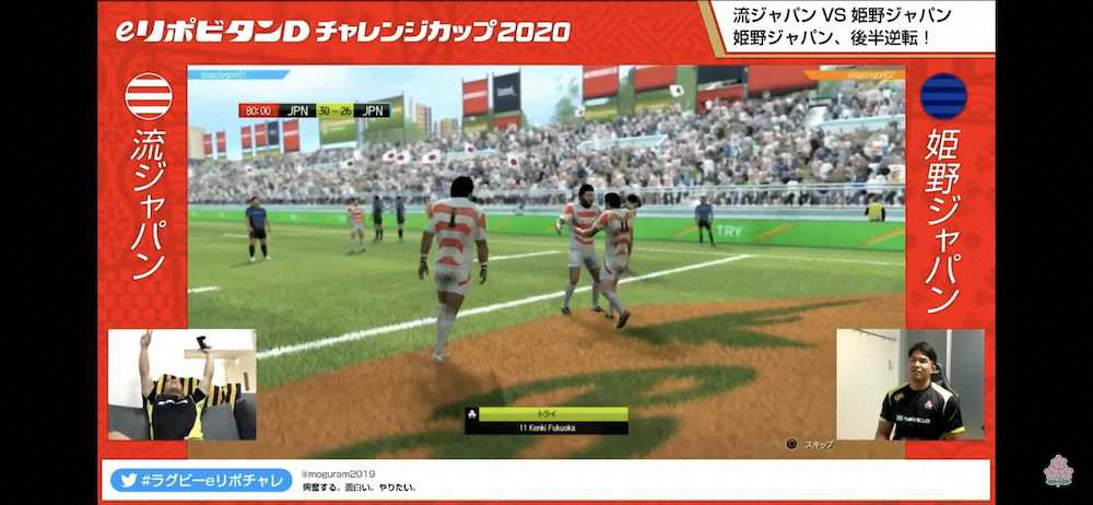今回の対戦は「eリポビタンDチャレンジカップ2020」と銘打たれ、日本協会が新型コロナウイルスの影響でリアルのラグビーを渇望するファンのために企画。当初は7月5日に開催予定だったが、熊本豪雨の影響で開催を延期。約2カ月遅れでガチンコ勝負が実現した。