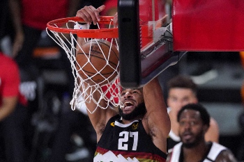 NBA西地区準決勝のクリッパーズ対ナゲッツの第6戦が13日にフロリダ州オーランドで行われ、第3シードのナゲッツが最大19点差をはねのけて111―98(前半47―63)で第2シードのクリッパーズに逆転勝ち。シリーズ成績を3勝3敗として、昨季の1回戦(対スパーズ)と準決勝(対トレイルブレイザーズ)、今季の1回戦(対ジャズ)を含めて、NBAのプレーオフでは史上初めてとなる4シリーズ連続で最終第7戦を戦うことになった。