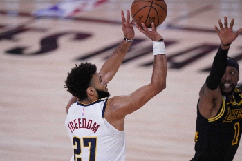 ジャンプシュートを放つナゲッツのマーリー(AP)