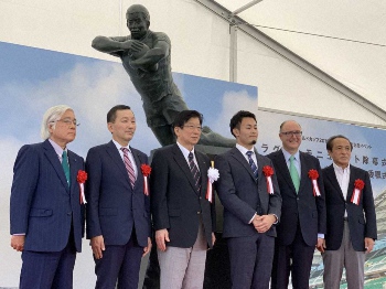 銅像になった福岡堅樹 コロナ禍のラグビー界を救う エコパスタジアムで除幕式
