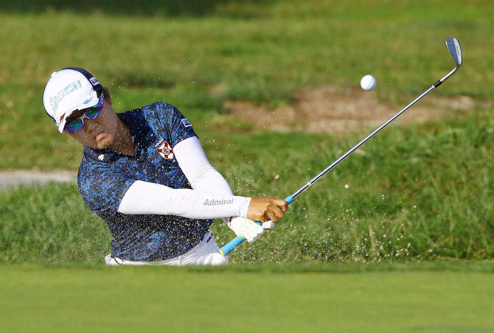 第1ラウンド、7番でバンカーショットを放つ畑岡奈紗