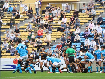 観客には検温と消毒が義務づけられ、試合中には大型ビジョンにマスク着用などの呼びかけが行われた。試合後の両チーム懇親会も、今年度は実施なし。異例づくしのシーズンだが、「チーム目標として“ハード”を掲げている。全員がハードしきったことで、この結果が得られた」と岡崎主将。ウィズコロナの時代でも若きラガーの熱き魂は不変だった。