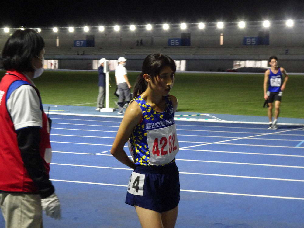 自己記録15分0秒01の更新もならず、レース後は疲れ切った表情。男子とのレースについて「前半は引っ張られていたけど、離れるにつれて1人で走っていた。(離されすぎて)前を追う感覚が失せてしまった。後半に上げて追いつくイメージの方が良かったのかな」と振り返った。