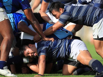 開始2分に先制トライを奪い、その後も安定したセットプレーで優位に立った。一方でミスも重なり、摂南大に計3トライも許した。だが、コロナ禍により、全体練習を始めたのは7月下旬。出遅れたことを考えれば、上々の初戦といえた。