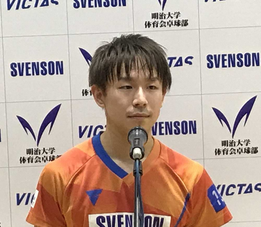 丹羽孝希が“新婚”1勝 母校明大卓球部のドリームゲーム参加